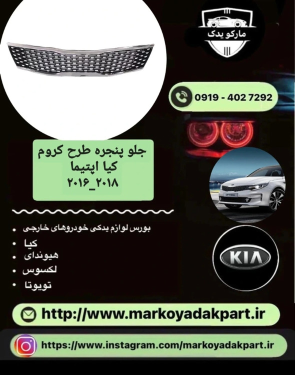 اولین چیزی که در خودروی kia optima میبینید جلو پنجره کیا اپتیما می باشد که نقش مهمی در رابطه با عملکرد فنی خودرو دارد. این قطعه در رابطه با خنک کردن موتور و رادیاتور که از گرمای بیش از حد داغ می شوند جلوگیری میکند. البته طراحی جلو پنجره مختص عملکرد فنی نمی باشد بلکه تاثیر بالایی در ظاهر خودرو دارد.