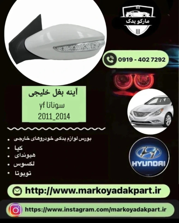 اینه بغل سوناتا 2011_2013 سمت چپ سفید